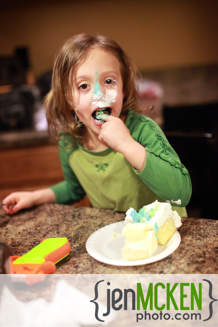 My lil’ brother Jacob turned six today-I feel old! We’ve always tried to get together on the ACTUAL day of that persons birthday so today we all gathered at my Mom’s for some cake/cake smashing, ice cream, present opening and a balloon fights. Yeah, never a dull moment!! Good times 🙂