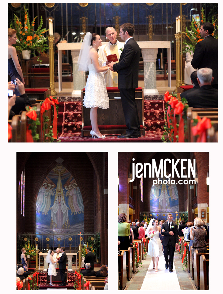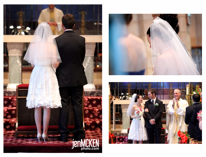 Katie & Ethan had their ceremony at the gorgeous (a bit on the dark side in terms of lighting but just enough ambient light) Our Mother of Sorrows Catholic Church. It was a beautiful ceremony and I just adored the way Ethan stared at her during the ceremony…..ahhh love!! 🙂 Have I mentioned how much I LOOOOVE her dress! Just sayin!!