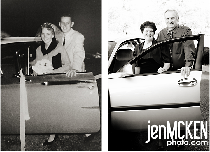 They have very few photos of their wedding day. The classic “we hired a family friend/family member to take the photos” and now we hardly have any. The one photo they did have….a photo of the two of them before getting into the “get away car”. NO…he doesn’t still have the car, but we HAD to try to re-create it, just for old times sake!