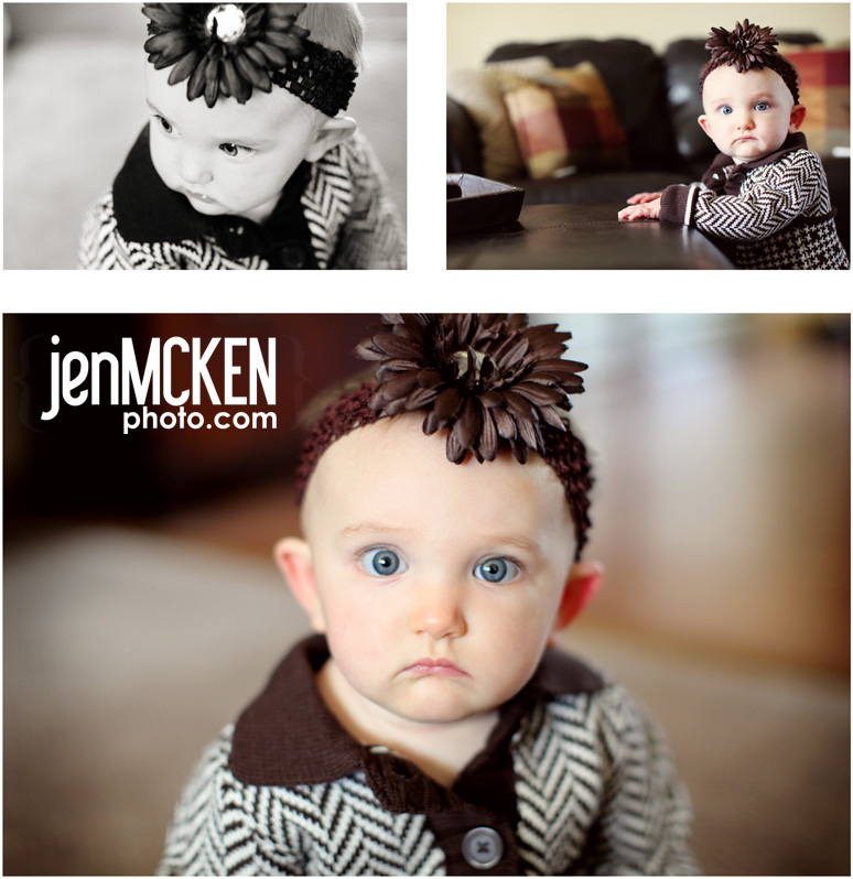 Never mind her cute headband–or her cute dress….look at her eyes!! Livia is 8 months old and after some “not so great” experiences with other chain photography studios, Mom wanted to pull out all the stops to have their family photos. I love the little facial expressions she made throughout the shoot…sassy little one she is!! 🙂