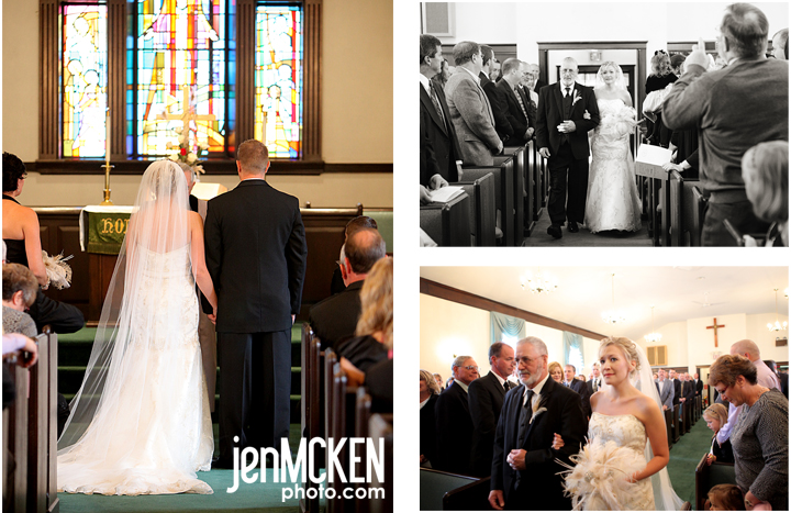 Tara and Craig got married in the very church she attended growing up by the VERY person who married her parents….so this church held some history for them. It’s just an itty bitty church in the town of Avonmore, PA called the First Presbyterian Church. I’ve been to small churches before-in fact, in the rural areas, most of the churches are conservative and small….BUT with that said, there is typically always a few pews without people-it happens. NOT everyone comes to the church for the ceremony, some people only come for the party. In their case, the church became a standing room only event. Every single spot available in the pews were taken, there were people standing on the steps and down the sides of the church.