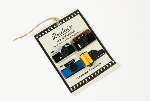 Wooden Camera Magnets and Stamp: ” Vintage inspired wooden cameras that stamp, magnetize, and hold photos”