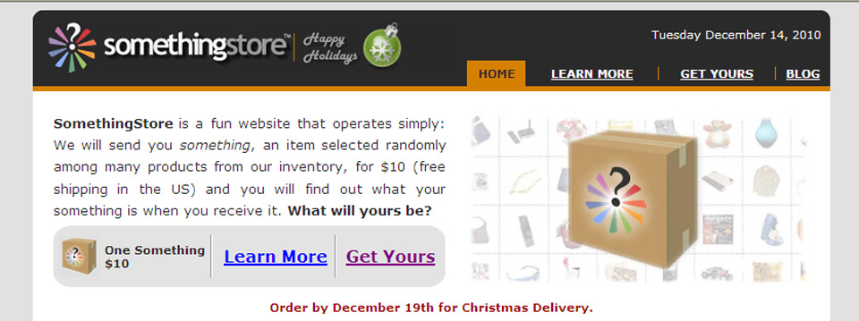 The Something Store is a fun website that operates simply by sending you something, an item selected randomly among many products from their inventory, for $10 (free shipping in the US) and you will find out what your something is when you receive it.” Awesomeness!!