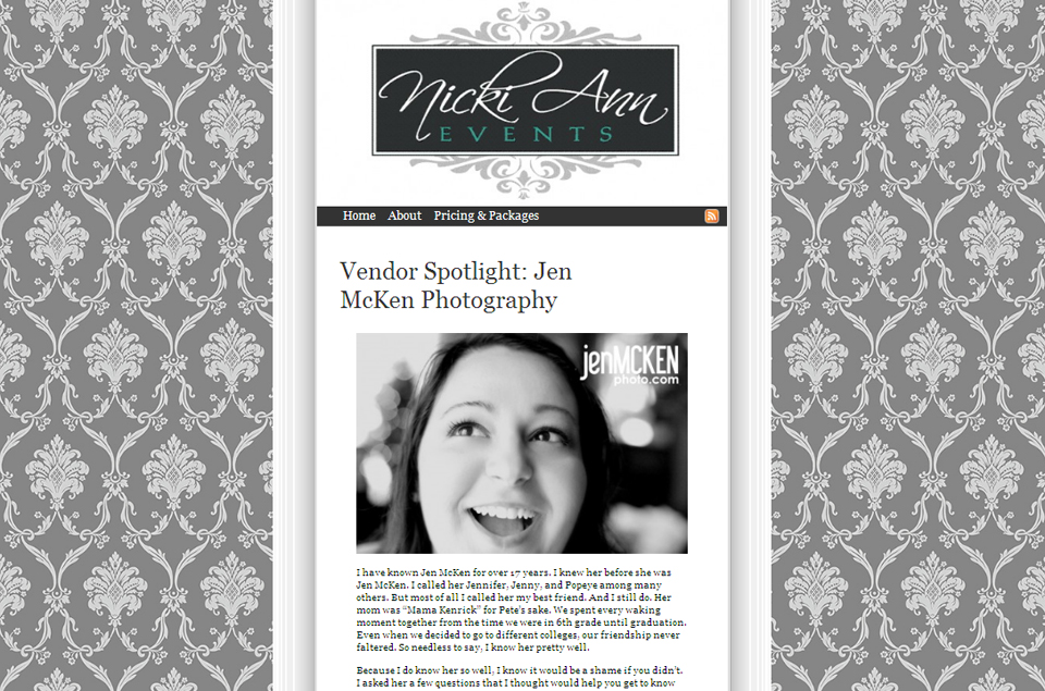 She’s amazing…I’m telling ya! Sunday, Nicole with Nicki Ann Events featured me on her blog!!! What What?? Take a minute to head on over to her blog and check out what I had to say during my question and answer session with her. Leave her a little love so I know you were there! (click on the image below). Every Friday she highlights a Friday Find as well as other wedding planning tips and tricks on her blog. Brides-this is an excellent resource. Follow her on Facebook: Nicki Ann Events