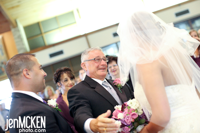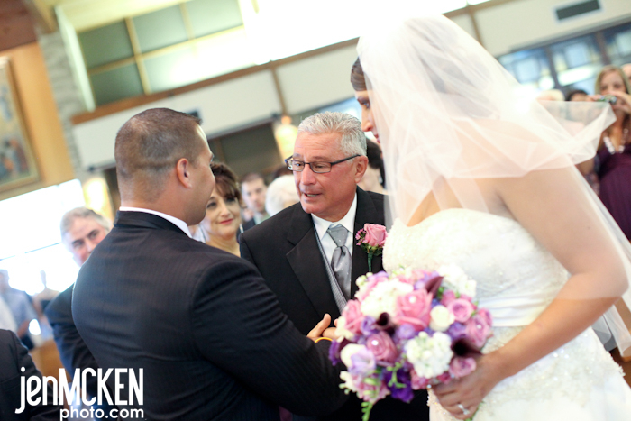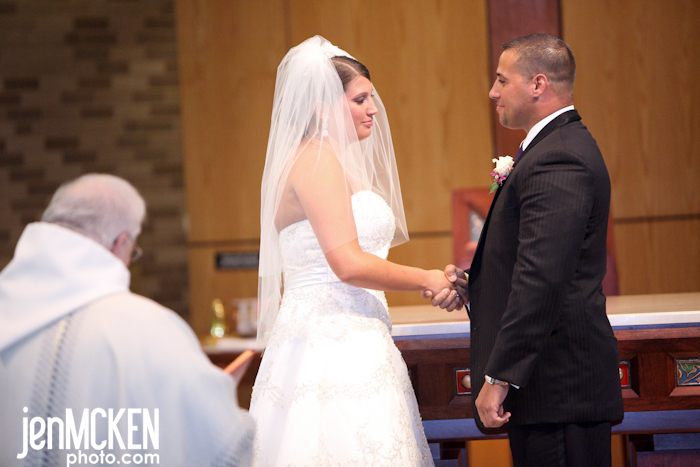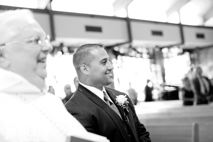 One of the BEST things about standing in the front of the church while the bride is coming down the aisle, is listening to what the groom says. As Natalie came down the aisle, Father Chester Raimer whispered to Dan, “Are you ready for this?” Dan without hesitation and with the biggest smile on his face says, “Yes!!……Look at her, she’s so beautiful!” <insert tear>