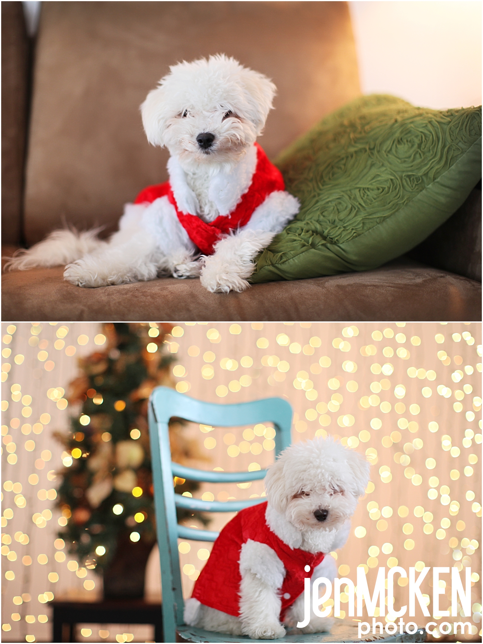 Remember Gracie?! She’s our little fluff ball. She’s feeling MUCH better these days after her “girl surgery”. She didn’t like me much for a few weeks…but she’s back to normal (minus the hair cut)! She’s looking a little shabby but I wanted to get her holiday photos before her hair cut and then again afterwards! It’s her first Christmas….. 🙂