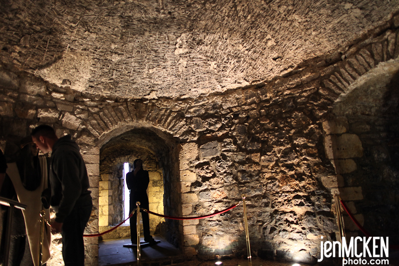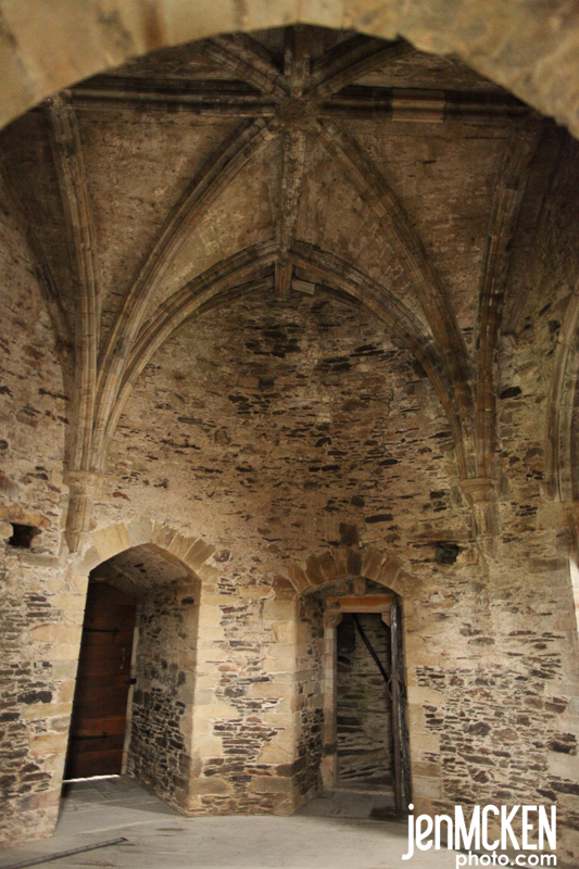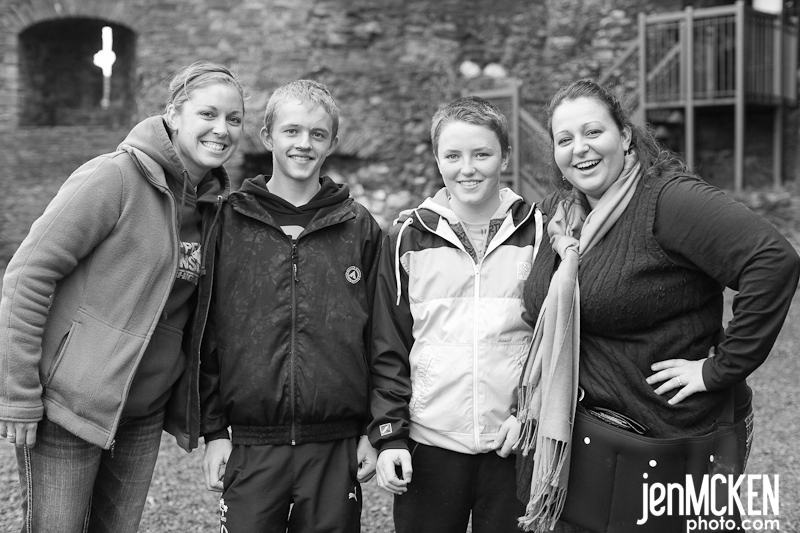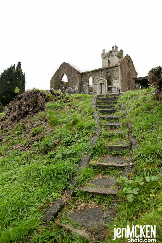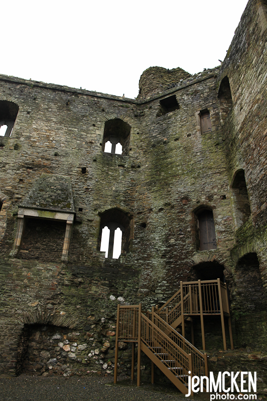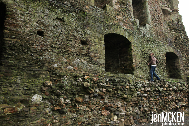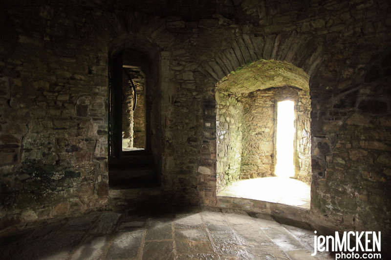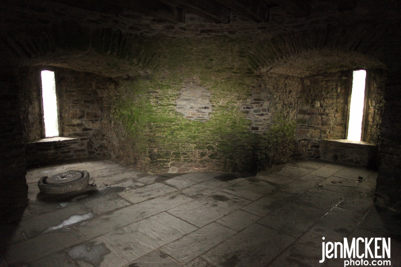 Long story short, we eventually get on the road and because it had rained the entire night plus half of the morning there were large and deep pot hots on the back roads. Me wanting to SEE EVERYTHING, I had my window open so that I could do some “drive by shooting”…when Greg promptly went thru a HUGE puddle and sprayed me right in the face! I had to laugh….considering the morning I had just had. I think I almost peed in my pants! hahahaha!! On our back road detour we passed thru a little town called Fern. We found a castle that was falling apart and decided to explore. We pulled over and literally broke into the castle…whoops! Erin started to climb the walls like a 10 year old and Greg and Jereme went directly inside to check out the joint. I lagged behind to take photos. After making it inside I realized everyone was upstairs. It was so dark in the place that the only light we had was from our cell phones. (Thank god for the flashlight app) On our way back down to the bottom floor, my left foot stayed at the top and my right foot made it’s way to the bottom. It was as if it was slow motion….I fell.down.the.friggen.steps!!! My knee swelled up and I thought, “ohh crap, I still have 5 more days to get thru”. I saved my camera though!! My knee hurt for several days but it made for an awesome story to tell Mallory one day. “Hey Mommy broke into a castle and fell down a pair of 800 year old steps!” haha!