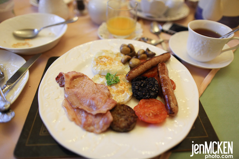 We woke up at the crack of dawn for our first traditional Irish breakfast-we wanted to get an early start with everything we wanted to cover on the agenda for that day. This was my first experience with white and black irish pudding….I’ll try anything once, but I swear to you I will NEVER try THAT again! LOL The white pudding isn’t really pudding at ALL, it consists of pork meat and fat, suet, bread, andoatmeal formed into the shape of a large sausage-the black pudding is pretty much the same except it has blood in it, otherwise known as blood pudding. Gag me now! I tried it before knowing exactly what it was!!! A traditional Irish breakfast is VERY fulfilling! They definitely live by the “breakfast should be the largest meal of the day” rule-THAT’s for sure!! LOL I do have to say that I love their “bacon” way better than ours in the states. It’s basically a large chunk of ham…. 🙂 We didn’t leave hungry at ANY of the bed and breakfasts we stayed at!