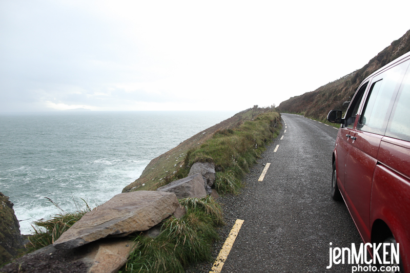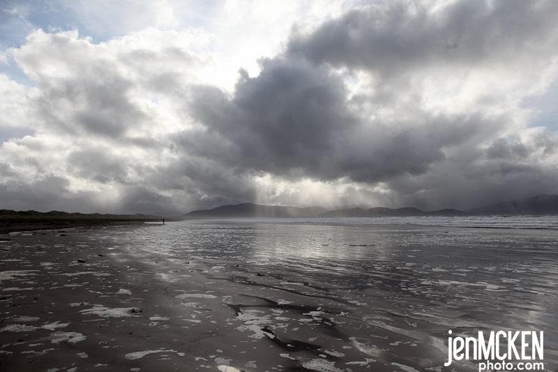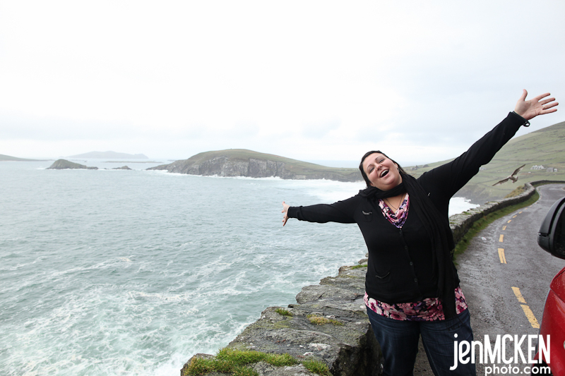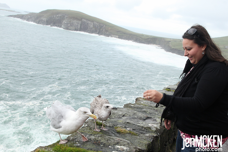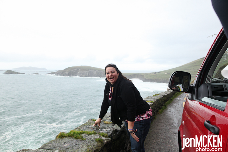 It was my turn to drive but it was also some of the windiest and most narrow roads EVERRR…but hey, just let the girl who falls down the castle steps drive..no big deal!! LOL We got up bright and early again to make it to the Dingle Peninsula. If I were to sum up the day it would be “rainbows and windy roads”. Rainbows were EVERYWHERE…..and no we never found the pot of gold! BUT we did find some other treasures. We stopped at Inch Beach where Erin found berries….get it, she found berries in Dingle….seriously, how can you NOT laugh!! LOL We spent some time there collecting shells and watching the sun try to peek out from behind the rain clouds…it was simply beautiful and majestic-there’s really no other way to describe it!