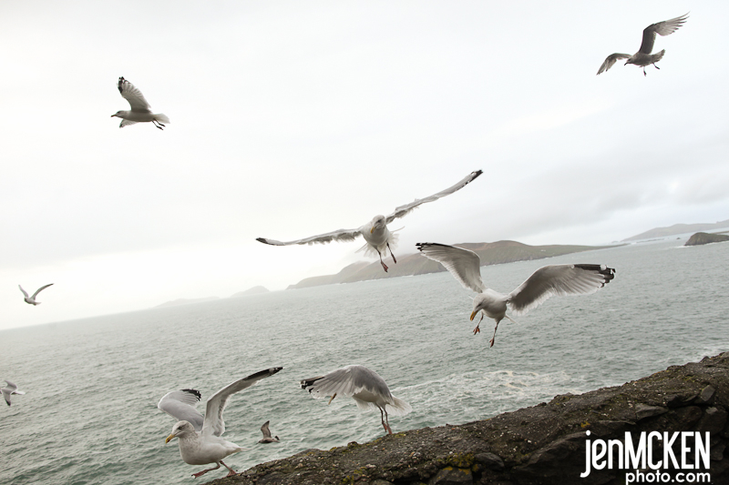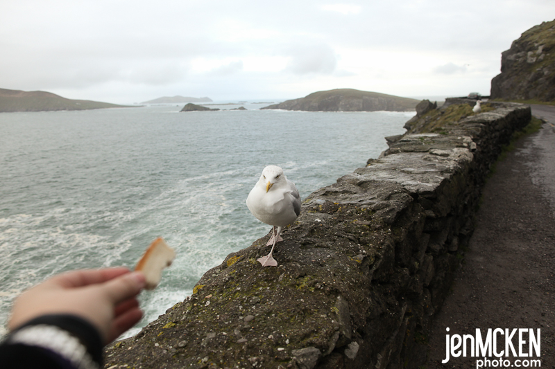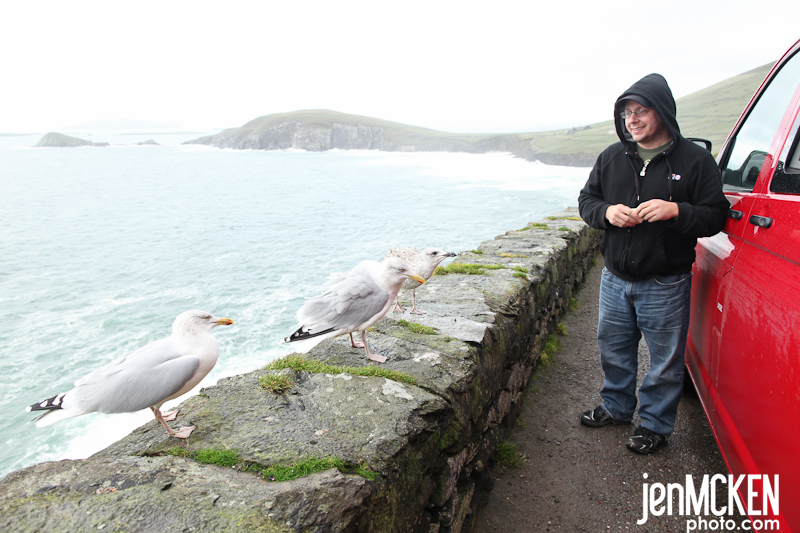 As we made it further down the peninsula we ran into a few sheep crossings, drove down the “ever so famous” cliff roads around the Slea Head Drive and fed the seagulls. Our bed and breakfast hosts had also told us about this place called “Gallarus Oratory Church” and after hearing that it was built between the 6th and 9th century, Greg and Jereme HAD to check it out. It’s AWESOME if you really think about it, that something THAT old is still in it’s orginal condition. It’s shaped like an upturned boat and they used corbel vaulting, a technique developed by Neolithic tomb-makers. Whether your into history or not…you can’t help but be in awe of it…..as if there wasn’t enough in Ireland to be in awe of! 🙂