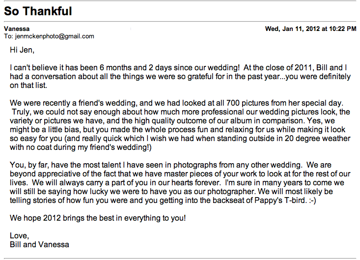 Late last night-right before I was heading to bed, my phone alert went off that I had a new message-as much as I try to set boundaries and try to only check my emails during certain times of the day..sometimes I fail miserably. This was one of those days. As I’m laying in bed, I begin to read the email that she sent to me. This was completely out of the blue and I was a bit taken back because it had been a little over 6 months since they had been married. As I began reading, I seriously teared up….