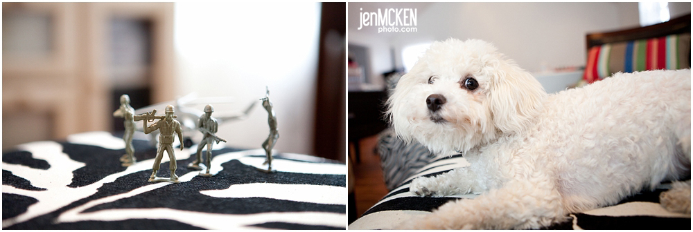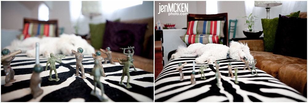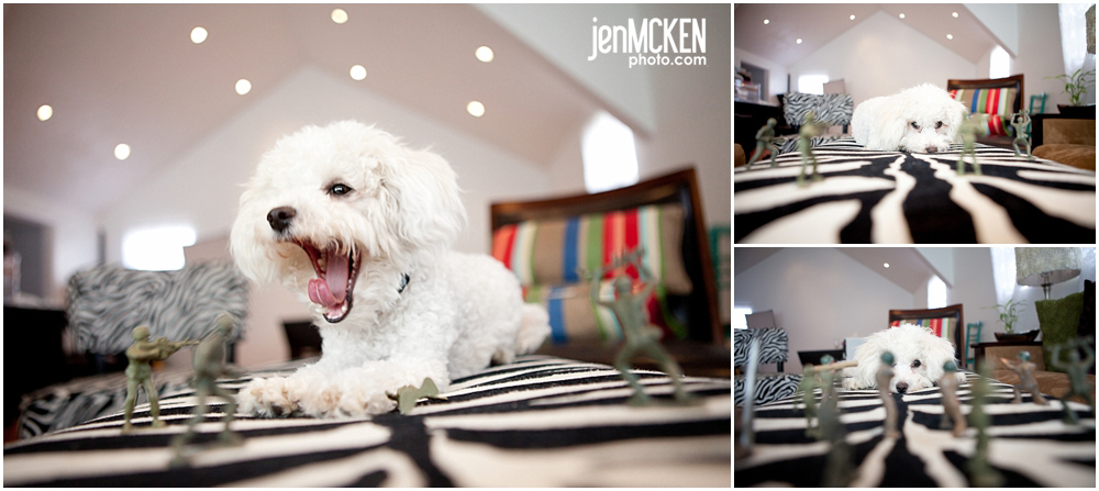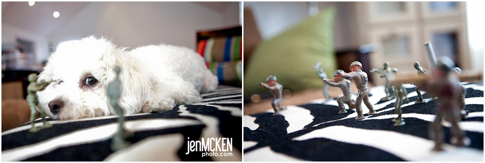 So anyways, he was playing around with practicing a few techniques in the studio meeting space and he came up with the following with the help of our pooch Gracie. And just for the record, no animals or army men were harmed in the making of this! haha!