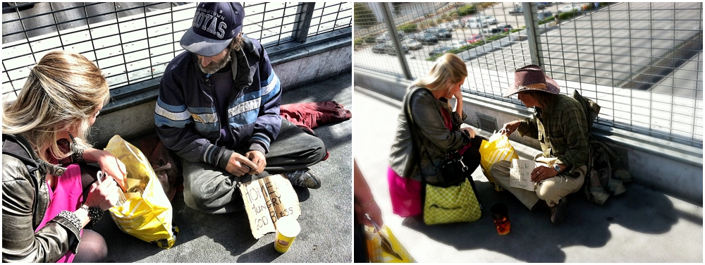 The girls separated all of the food into three bags in the lobby of the hotel-sure we got some weird looks but as we carried the heavy yellow bags what probably felt like MILES we approached the first homeless man. We expected them to take it but we didn’t expect them to immediately open and start eating, if I’m being honest, it broke my heart. In a world where we are taught to be skeptical of anyone begging for money, to tell them to “just go get a job”, to assume that they are faking, that they drive better cars than us, etc. etc……it was so heartwarming to watch a group of MY FRIENDS be so SELFLESS! One of the BEST highlights of our trip….at least for me!