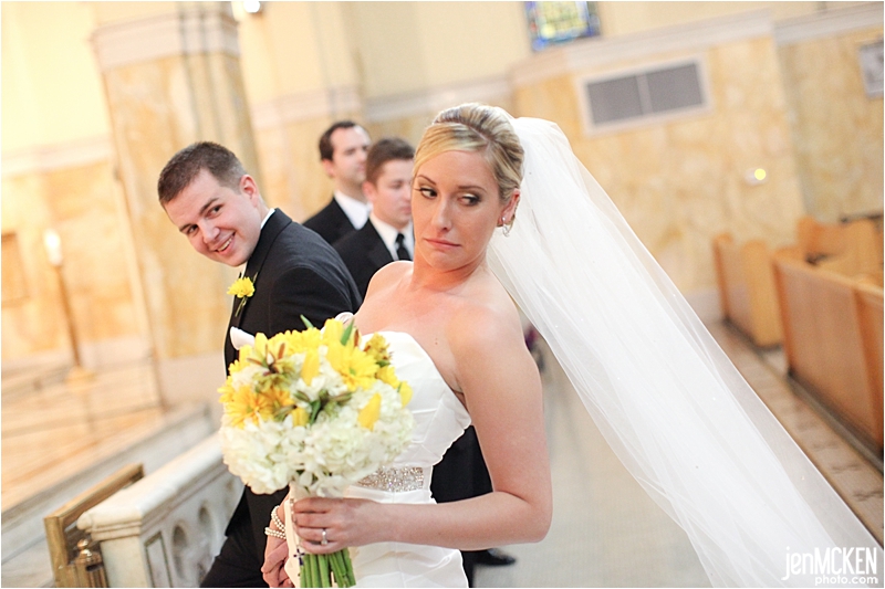This shot cracks me up because her veil was so long that someone had accidentally stepped on it…..no brides or hair do’s were harmed! 🙂