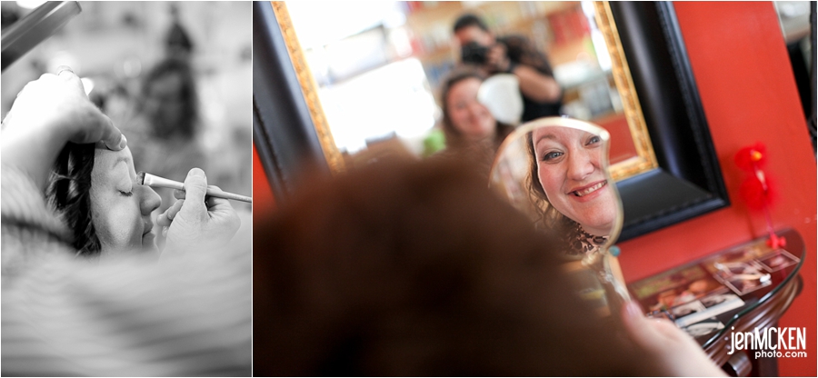 I mentioned that I shot a wedding on St. Patrick’s Day! I’m talking green beer, green details and maybe a few irish jigs here and there! I had to keep reminding myself that it was actually March…I mean, 70 + degrees in MARCH. As a matter of fact, while the girls were getting ready in the salon, they opened the back door to hear the bagpipes from the town parade. I’ll cheers to that (with green beer)! 🙂