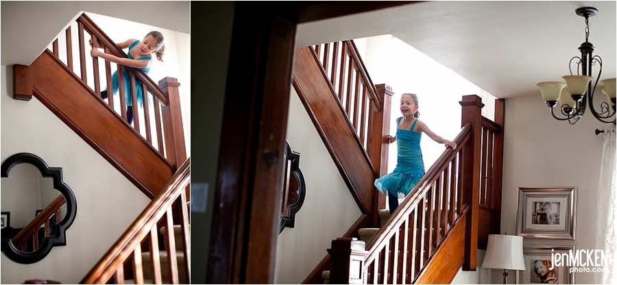 She stood at the top of the steps and peeked down stairs to see what she could see…it was so cute!!
