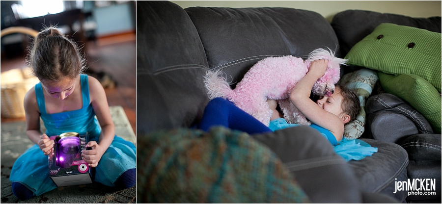 She also chose to wear the blue dress! You see, I tend to pick my battles when it comes to what she wears, she tends to have her own little fashion sense, and as long as her bum is covered, I tend not to argue with her clothing choices…if you’ve ever seen us out grocery shopping, you know EXACTLY what I’m talking about! On this particular morning she chose to wear her dress that Grandma had bought her. They had a girls day out and went shopping for the perfect “princess dress” to wear to the Disney Princess Show that came to town. She loved the dress SO MUCH that she’s found every excuse under the sun to wear it. She’s owned it maybe one week…and she’s worn it 3 times already…AND she plans to take it to the beach with us! Tee he he!