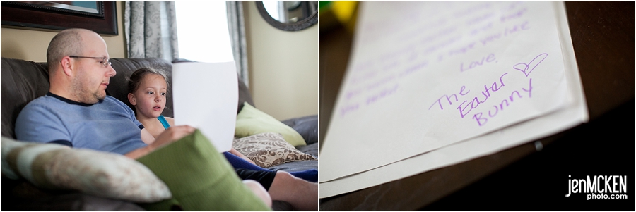 Reading the note to Daddy that the Easter Bunny left!