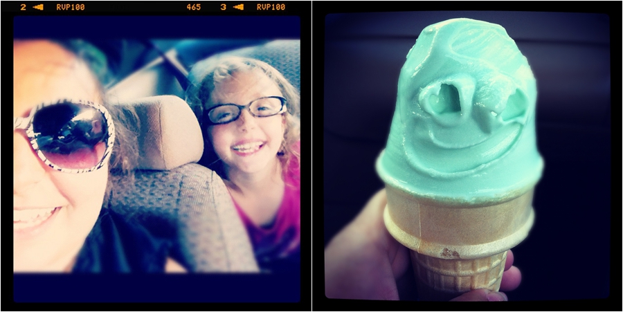 During the summer….our “THING” is to go out for ice cream in the evenings. My new favorite… Pistachio flavored ice cream…….WITH the smiley face!