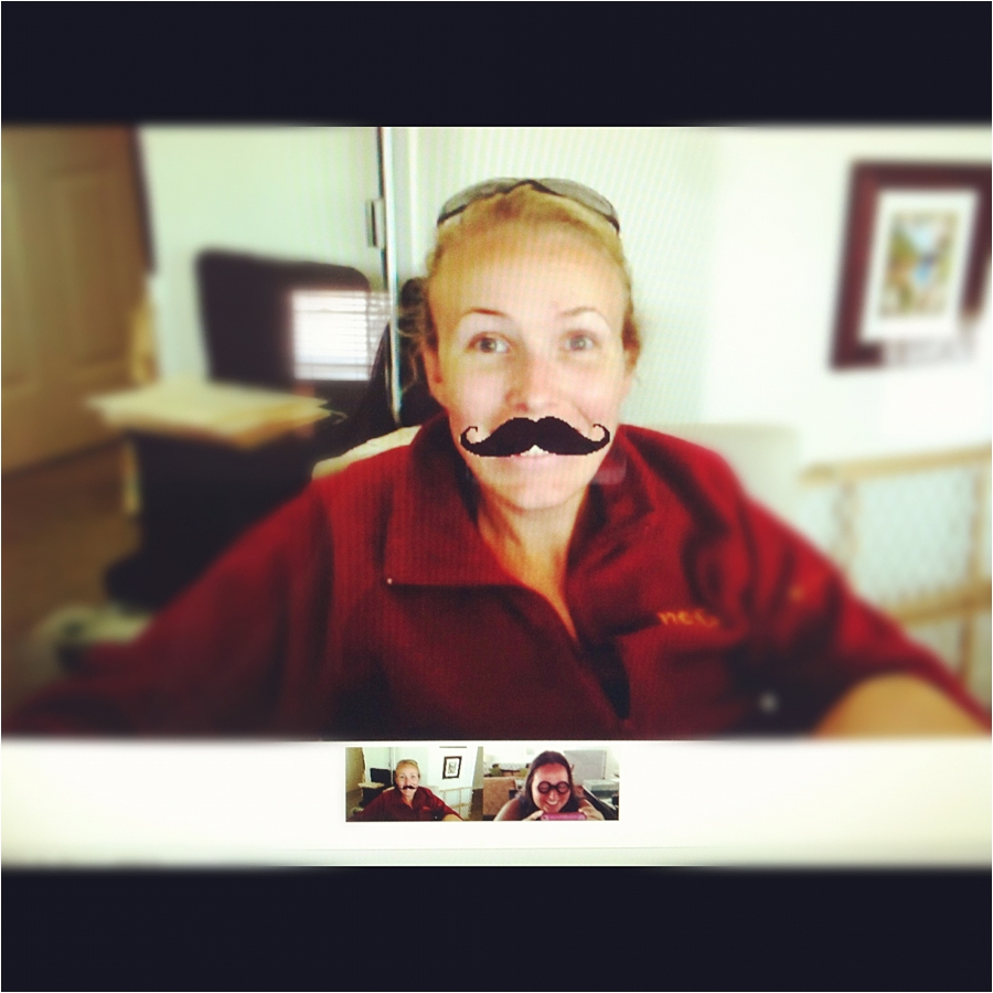 This is Alyson! (don’t kill me Alyson) But every week, her and I get together online with our mentor Paul (hayy Paul) and on this particular day, we discovered the fun little icons that allows you to chat with mustaches, hats, wigs, etc. Alyson chose a mustache that wouldn’t go away and I had on a pair of glasses. We laughed our butts off for the first 1/2 before getting down to bid-ness….with her mustache! hahaha!