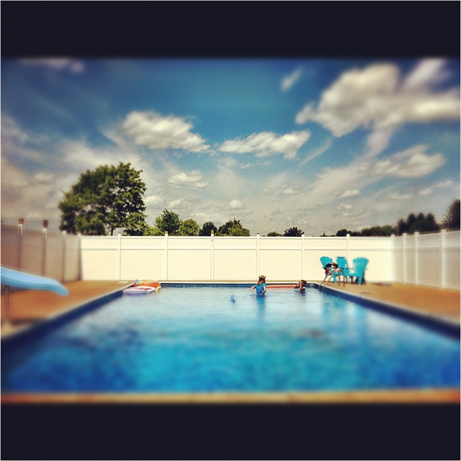 speaking of the POOL………this is my “new and improved” pool. We’ve recently had the concrete re-poured around it and the privacy fence put up and it looks SOOOOO different now! Greg ran electric all around the pool so that we can edit from any corner that our little hearts desire. You can’t see the pool house which is located behind me in the photo….but it is usually stuffed with cold beverages *wink wink*