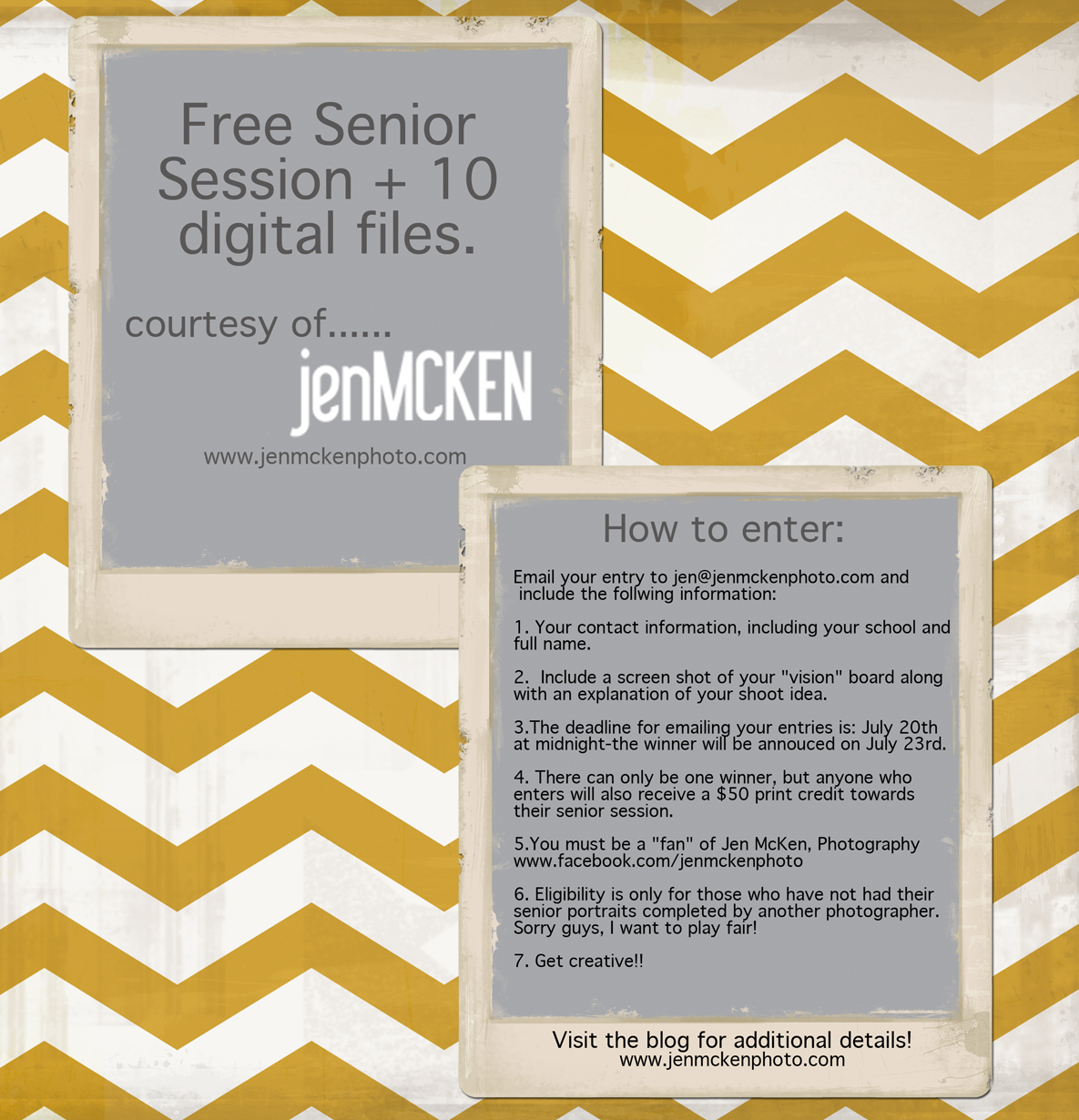 * Eligibility is only for those who have not had their senior portraits completed by another photographer. Sorry guys, I want to play fair!