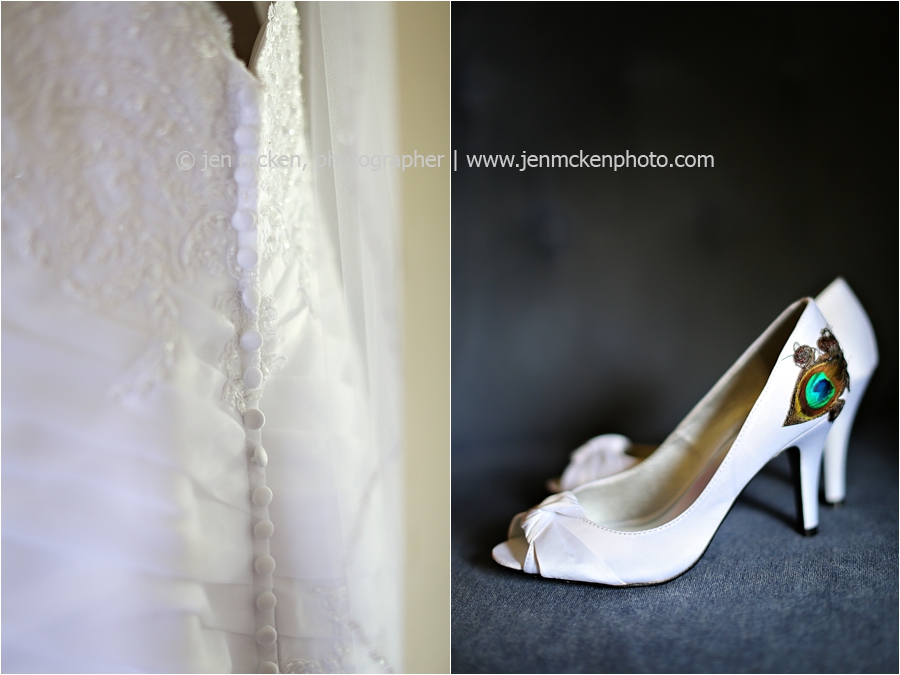 She chose a peacock theme for her wedding….so her shoes had beautiful feathers applied to the heels!