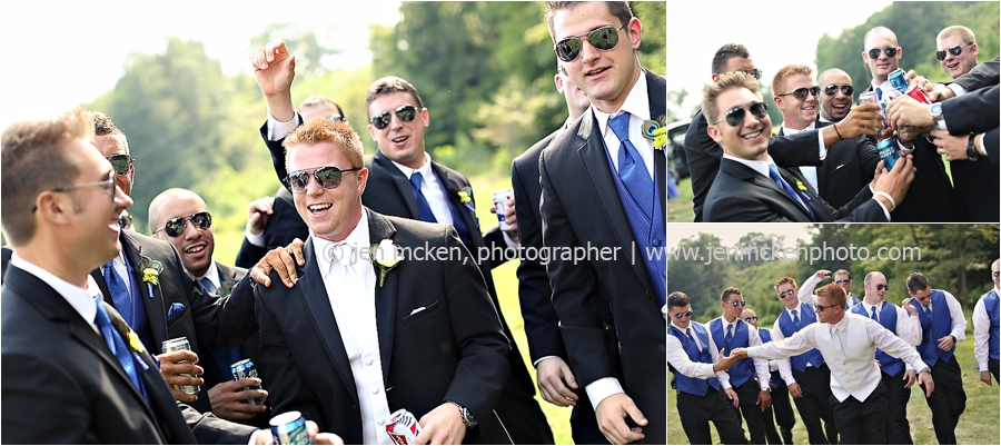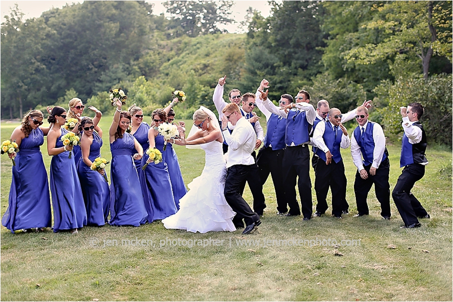 Part 1 of Jen and Hayden’s wedding started out rather conservatively……….but that didn’t last long..haha!! I’m a true believer that the people you choose to ask to be in your wedding party will determine the “funness” of your photos (I think I just made that up). If you want FUN photos, ask fun people to be in your bridal party…..it just so happens that all of their friends were FUN-TASTIC <insert spirit fingers> and we had a blast at Chestnut Ridge Golf Resort while roaming around to take the group shots. As you can see form the image below, sometimes we went off the beaten path….but we sure did have fun! I apologize for the photo overload, but it’s necessary! haha!