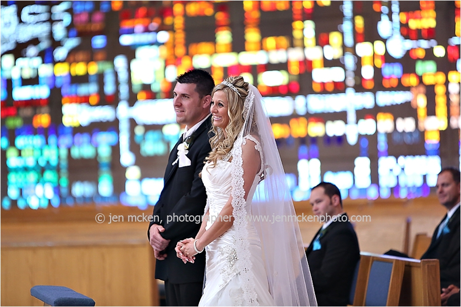 The stained glass in the church was absolutely gorgeous……of course we had to include it!!! 🙂 SUCH a beautiful couple!
