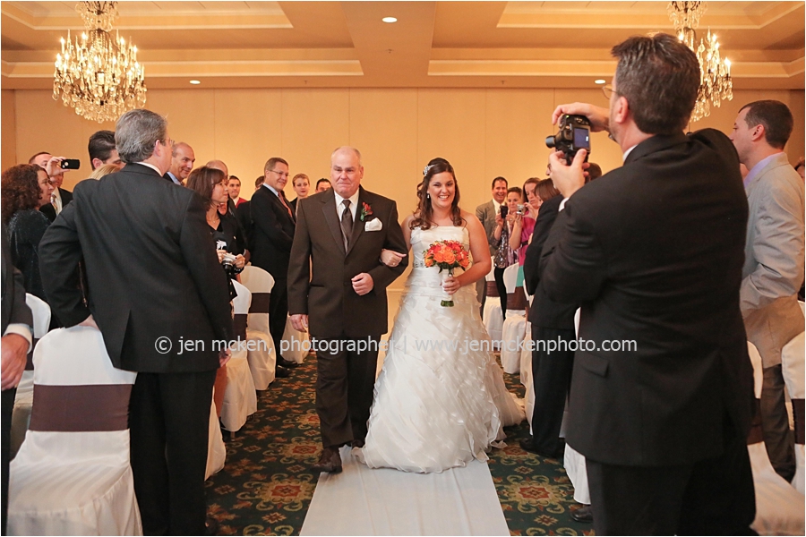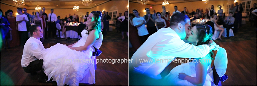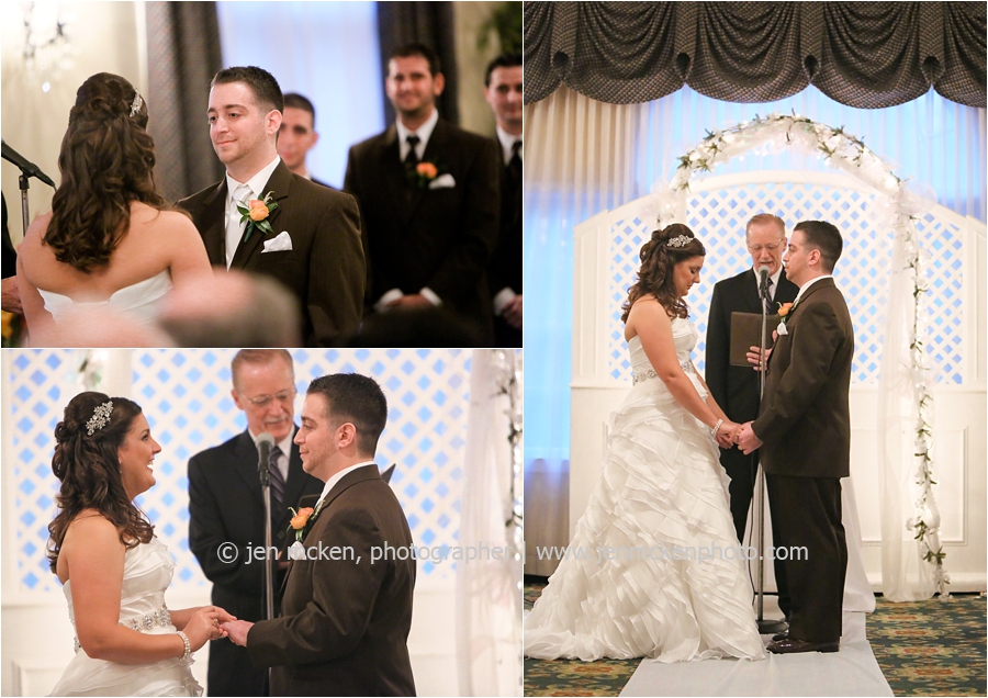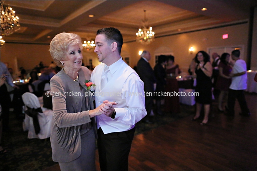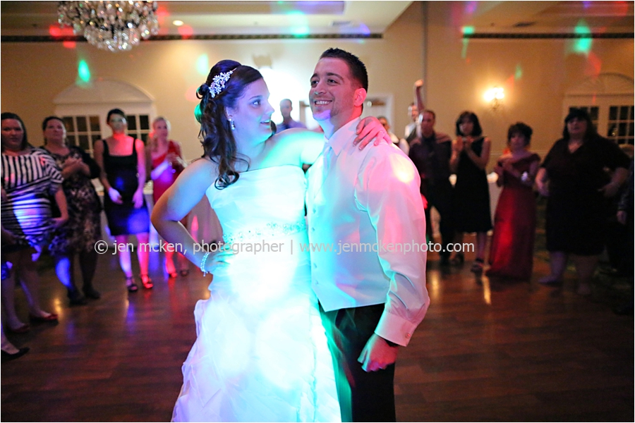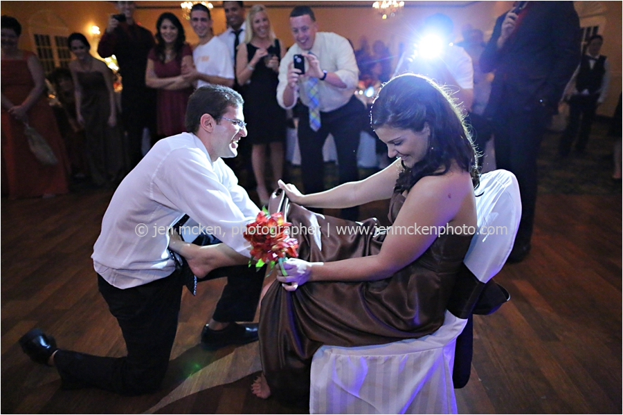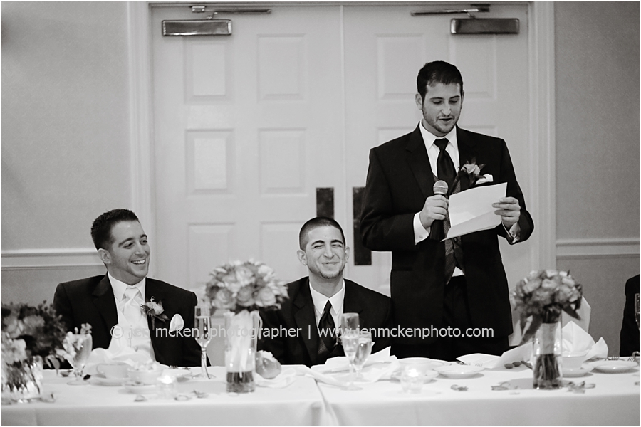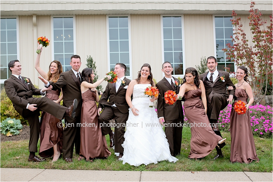 We really lucked out on the weather ……Hurricane Sandy was slowly moving up the East Coast and I’d be lying to you if I told you I wasn’t nervous that it would be wet and gloomy the day of the wedding. It was actually quite a beautiful day, with big white puffy clouds…and no rain! Because Scott and Casey had both their ceremony and their reception at The Blair Mill Inn, we stuck around the grounds of the venue for portraits. The lighting in the hallway was scrumptious!! 🙂