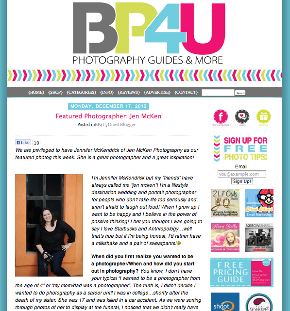 Want to know WHY I became a photographer or what were the hardest things I had to overcome when building my business? Head on over to BP4U and read my interview and featured post. 🙂