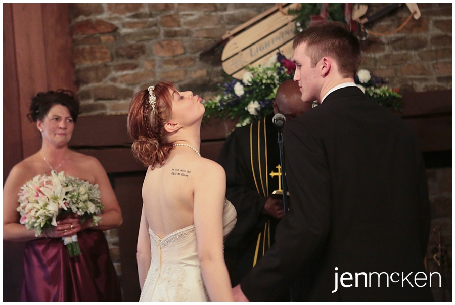 When I shot their engagement session, they were carefree and silly-so it was no surprise that during their ceremony there were a few laughs! When the officiant asked James if he took her to be his lawfully wedded wife, she stood there shaking her head at him as to be answering for him….tee he he! Then when it was time to “kiss the bride”, she stood with her lips puckered ready for it! I think everyone laughed and cried throughout the ceremony! And you know me….I love a couple with a sense of humor!