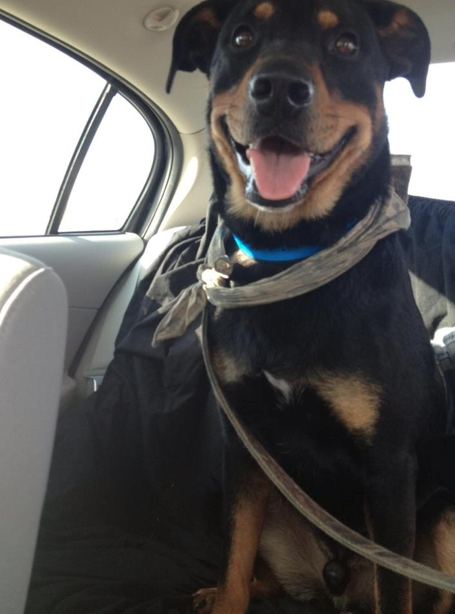 They hopped in a car on Monday afternoon and on Tuesday at 4:00pm, they picked Gonzo up from the shelter in Louisiana. Plans were also in place for them to drive to Baton Rogue to meet some of Corey’s traveling friends to pick up his belongings. Karen sent me a picture of Gonzo on the ride home and I’ve never seen a dog smile so big. They all returned safely to Blairsville on Wednesday evening.