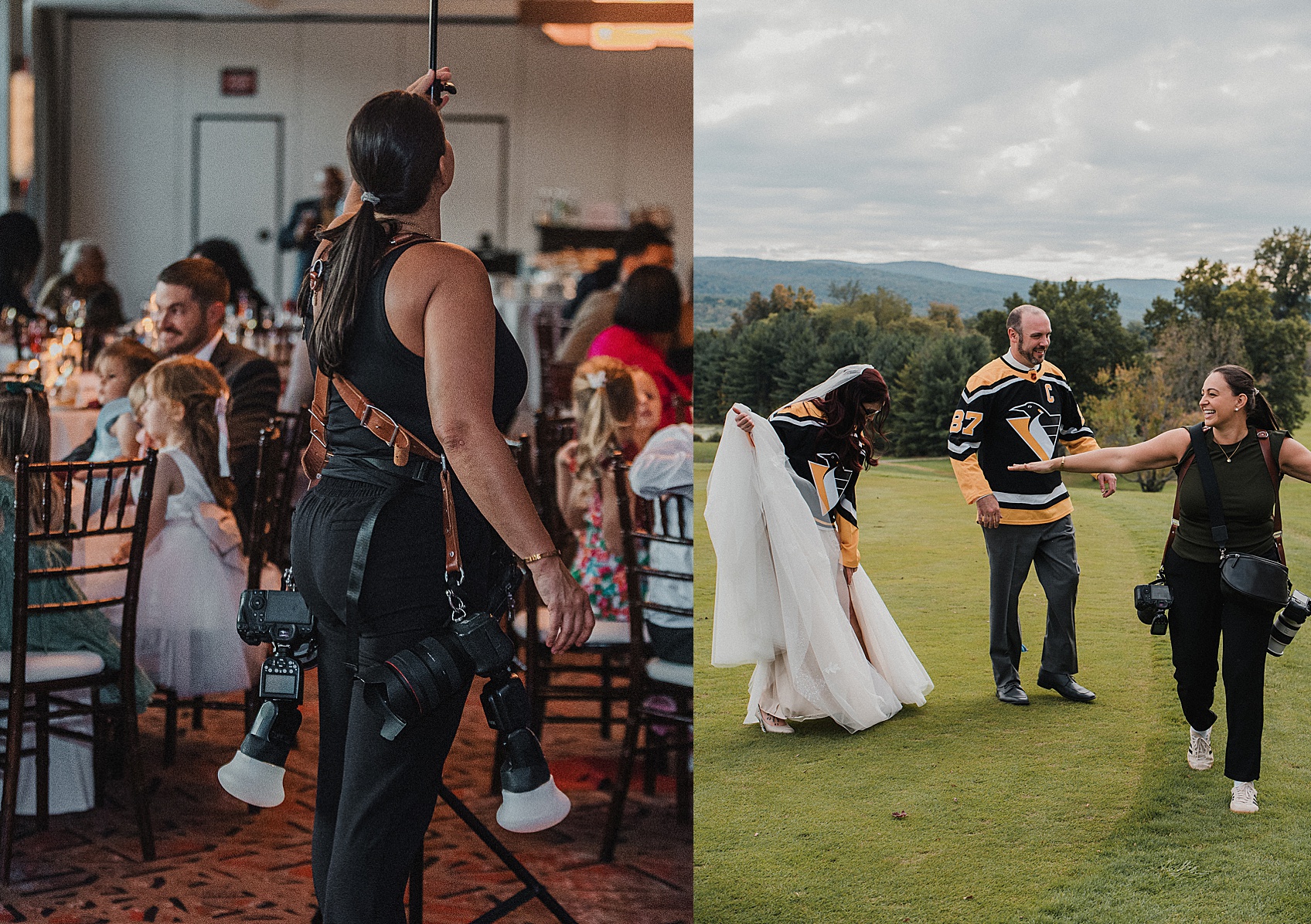A wedding photographer documents everything from getting ready through the reception while also managing lighting, guiding portraits, and capturing candid moments throughout the day..and sometimes telling Aunt Betty to back off because that’s not what the Bride wants. (kidding not kidding)